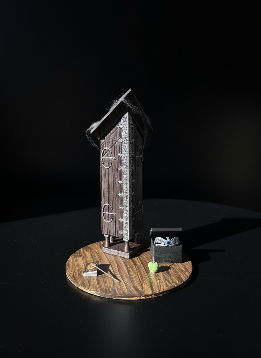 Este diorama representa el legendario armario evanescente, una pieza llena de misterio y simbolismo dentro del mundo de la magia.