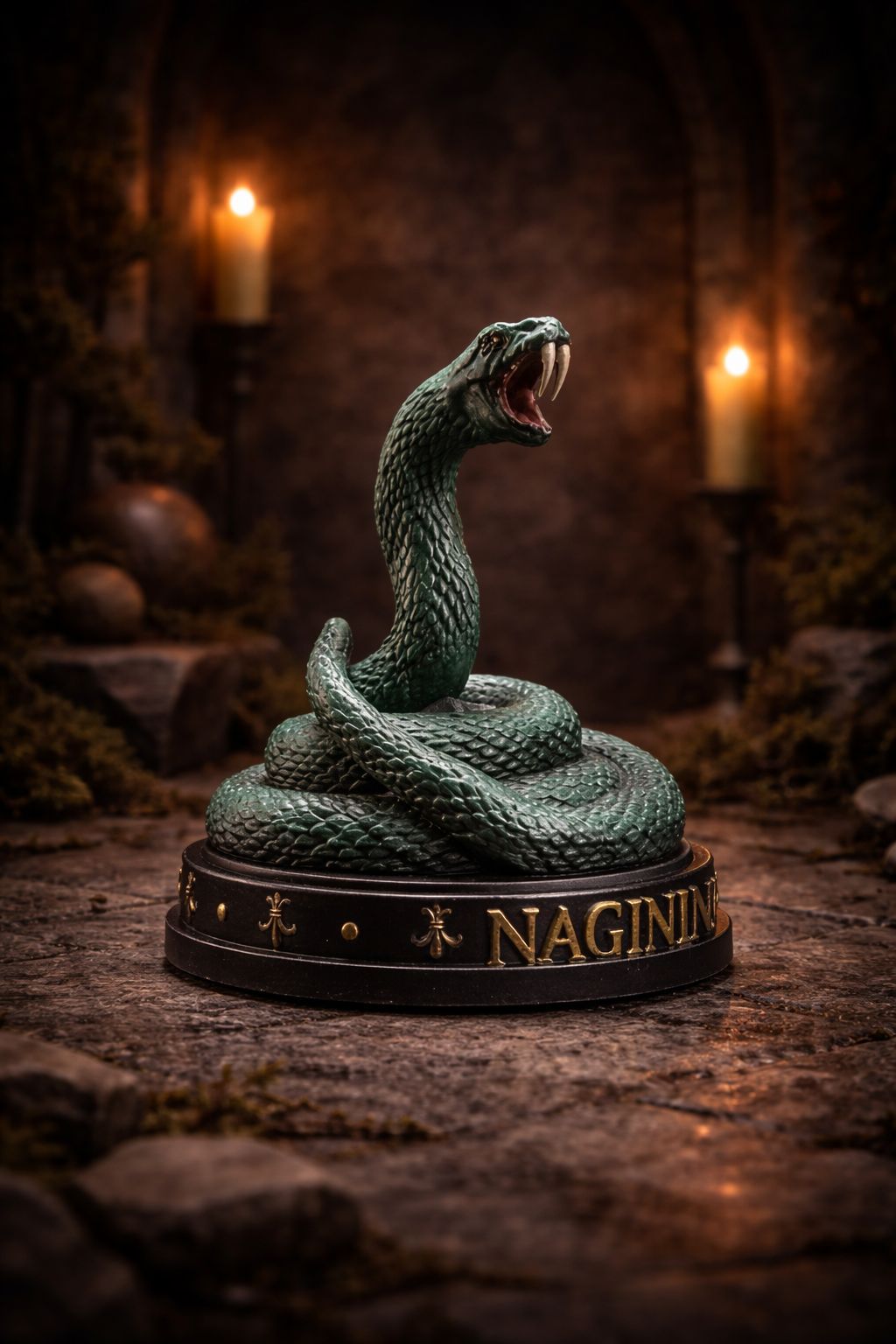Esta pieza representa a una serpiente vinculada a un poderoso hechicero del mundo mágico, una criatura silenciosa y peligrosa que transmite misterio y control.
