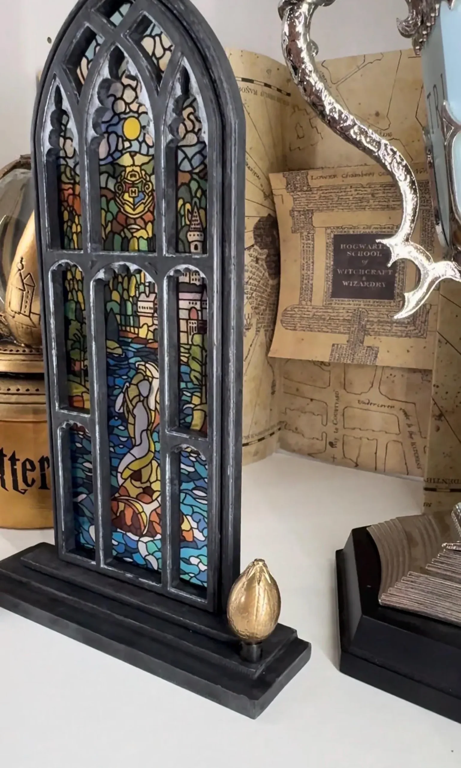 •🪙 Incluye: vidriera, huevo dorado y base decorativa